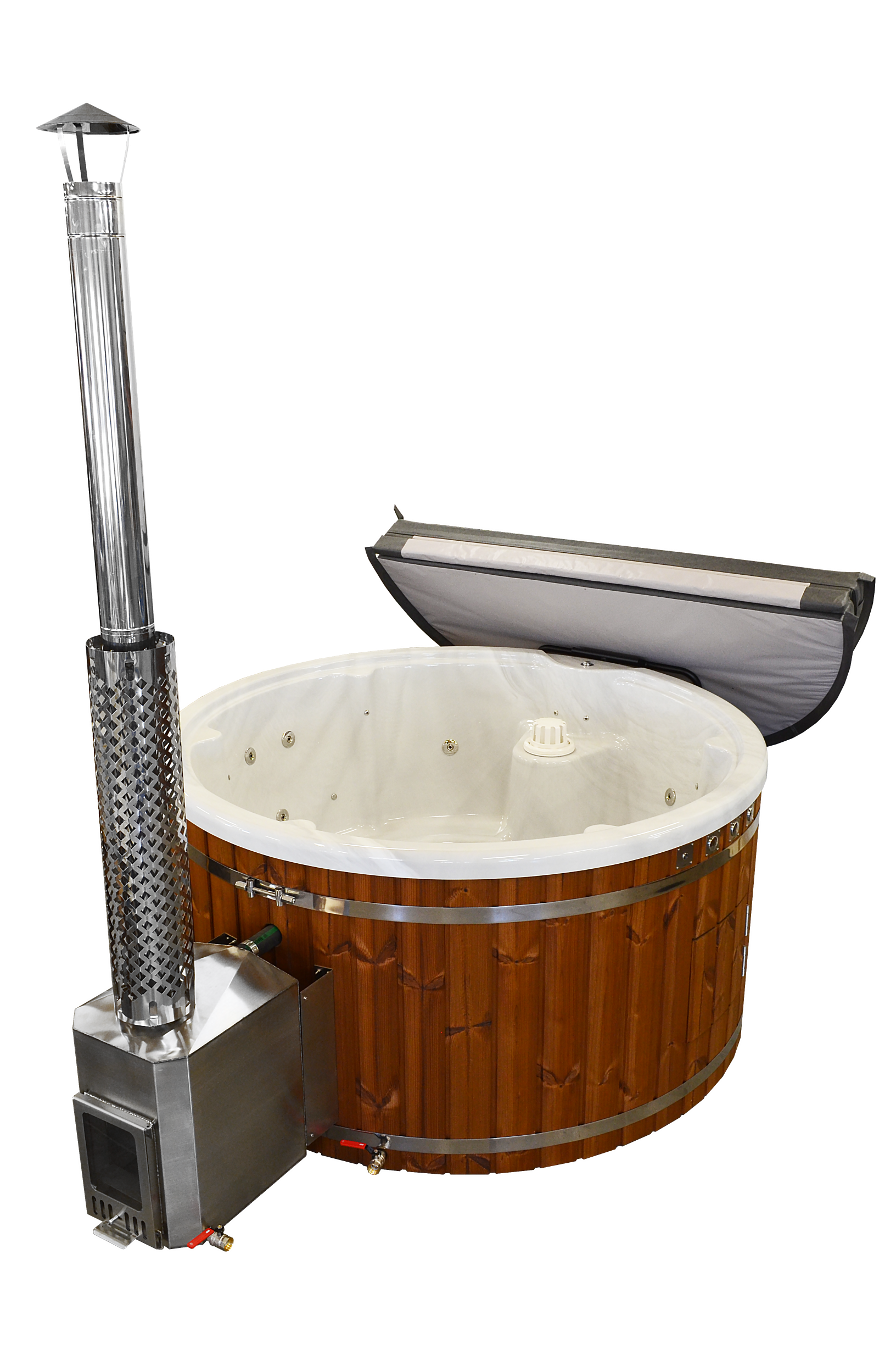 Einen Hotpot mit Holzofen kaufen - das Badefass mit Aussenofen